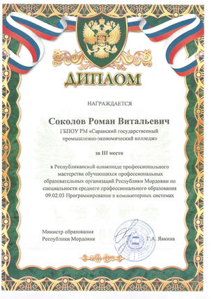 Преподаватель специальных дисциплин ГБПОУ РМ "Саранский государственный промышленно-экономический колледж"